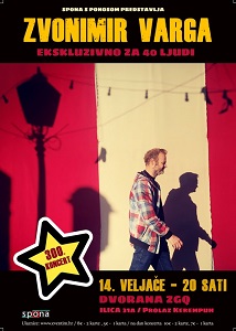 Zagrebački kantautor Zvonimir Varga koncertom na Valentinovo, 14. veljače od 20 sati, obilježava svoj 300. nastup u bogatoj karijeri popraćenoj brojnim nastupima, glazbenim i video izdanjima te publikacijama. Ovaj ekskluzivni koncert će se održati u dvorani ZGQ u Ilici 31a (Prolaz Kerempuh), a kako je broj sjedećih mjesta ograničen na 40 (četrdeset!), pozivamo vas da što prije osigurate svoju ulaznicu na idućem linku