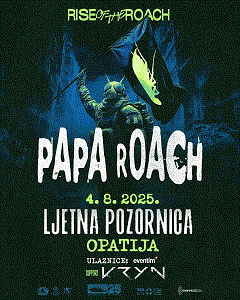 Kalifornijski rock sastav Papa Roach, jedan od ključnih protagonista suvremene alternative s kraja 90-ih i početka 2000-ih, po prvi put dolazi u Hrvatsku. Koncert će se održati 4. kolovoza 2025. na jedinstvenoj Ljetnoj pozornici u Opatiji.