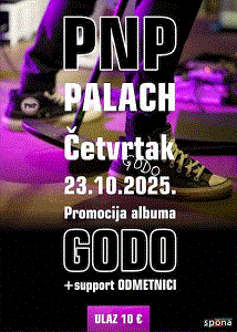 U ponedjeljak, 20.10.2025. s početkom u 18:00 sati u riječkom Dallas Music Shopu će se dogoditi uvodna promocija CD albuma „Godo” riječke rock grupe PNP. Bend je nastao u drugoj polovini 2023. godine i čine ga stare iskusnjare RI rock scene: Goran Matković – Moha (gitara), Sandro Silić – Sile (bas), Dragan Simić – Gec (gitara), Dorjan Sabljak – Dodo (vokal) i Roland Štrek – Roki (bubanj).