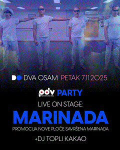 Nezavisna izdavačka etiketa PDV (Prekomjerna Doza Vinila, Puna Digitalna Vreća, Pakleno Dobar Video, itd.), pokrenuta je 1. studenog 2013. godine, 12 godina kasnije, po broju izdanja opasno se približava stotki. Ovaj lijepi rođendan proslavit će uz posebne goste – riječki sastav Marinada, koji će tom prilikom promovirati tek objavljen album ‘Savršena marinada’ (LP/Digital, PDV086), ujedno i najnovije izdanje u PDV katalogu. Nakon koncerta Marinade, nastavlja se uz ples i DJ-a Topli kakao a.k.a. Darko Kujundžić.