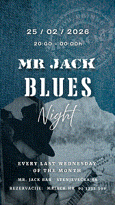 U srijedu 25. veljače 2026. dogodit će se prvo izdanje novog klupskog blues programa u zagrebačkom Stenjevcu. Riječ je o večeri ”MR JACK BLUES NIGHT” koja će ići svake zadnje srijede u mjesecu u poznatom food, drink & rock’n’roll baru Mr. Jack u Stenjevečkoj 8A. Prvu večer otvorit će mladi Osin S., nakon njega veteran Vic Ciric, dok su glavni izvođač duet Romchi & Joe (Romana Orešnik i Josip Pavlović). Dođite i podržite novu blues večer i lokalnu blues scenu.