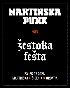 Kada punkeri i metalci udruže snage znate da je ozbiljna stvar na repertoaru, tako će biti ovog ljeta na trodnevnom glazbenom događanju – Martinska Punk meets Žestoka fešta! Festival će se održati od 23. do 25. srpnja 2026., u godini u kojoj Punk slavi prvih 50 godina postojanja, na već dobro poznatoj lokaciji Martinska nasuprot Šibenika. I ove godine nastavljamo njegovati dugu tradiciju punk koncerata i festivala na Martinskoj, a od prošle godine Martinska Punk dobila je i mlađeg metal/hardcore pandana – Žestoku feštu.
